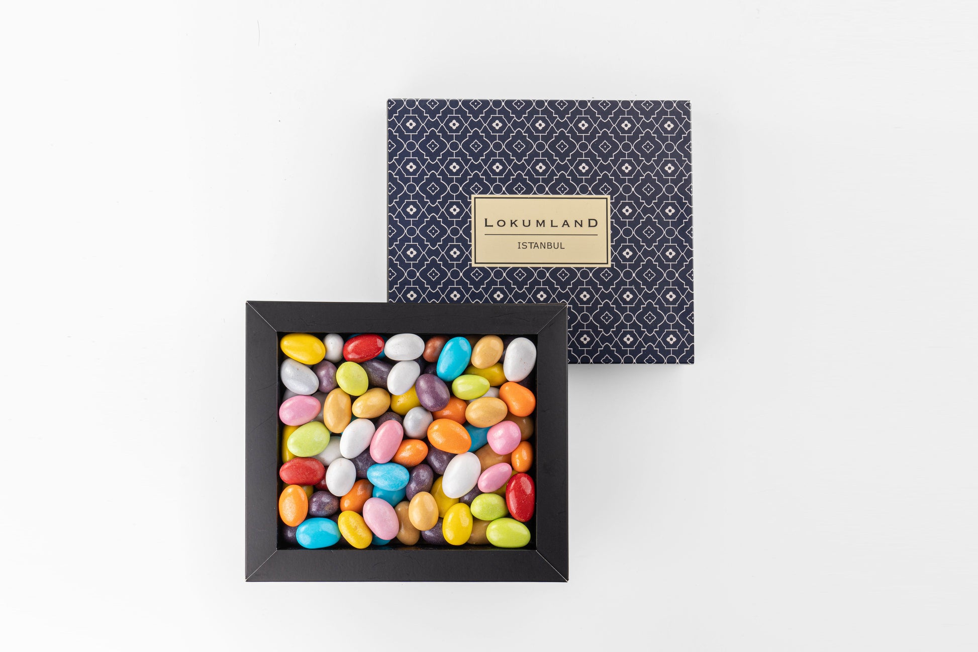 • İçindekiler: Sütlü çikolata%55. [(Şeker, kakao kitlesi, kakaoyağı, süttozu, emülgatür(lesitin)doğala özdeş aroma(vanilin)].Badem kaplama kısmı %12(şeker, kıvam arttırıcı(Arap zamkı),parlatıcı(karnauba mumu),renklendiriciler (E-171,124,133,129,102,110,133,142,153,155,172,555).